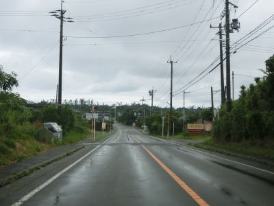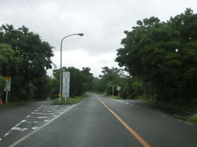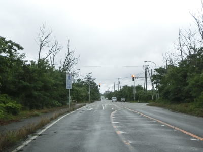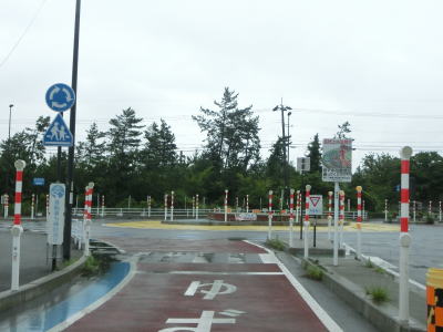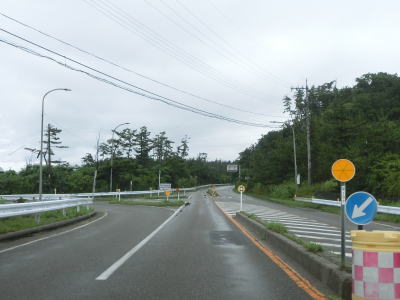 | 101.角田浜海水浴場の出入口には分離帯あり | 102.海岸線から少し離れた場所を快走 | 103.「この先ラウンドアバウト」 |