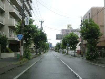 | 関屋昭和町交差点を過ぎてすぐに車線変移区間が終わる。信濃町交差点から1km程度の区間が車線変移区間なのではなく、信濃町交差点から南西に6km近くに渡って車線変移区間が続いている。 その後は中央分離帯のない4車線道路を市街地に向かって走る。沿線の家屋が途切れることなく建っており交通量も少なくない。R116とR289、R402の3国道重複区間だが、おにぎりが設置されているのはR116のみである。 |