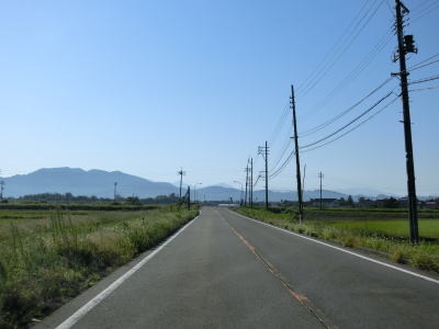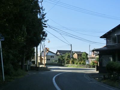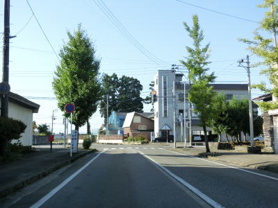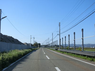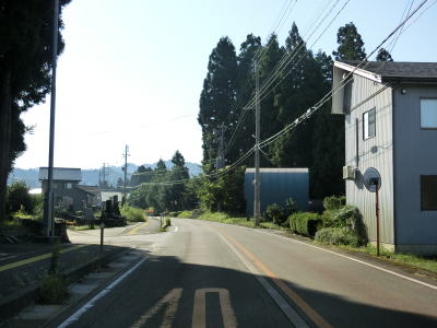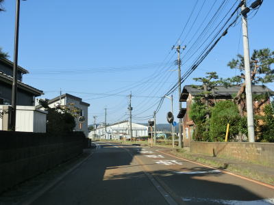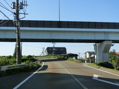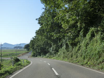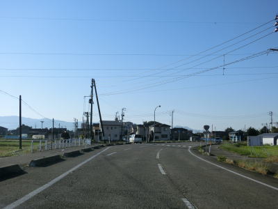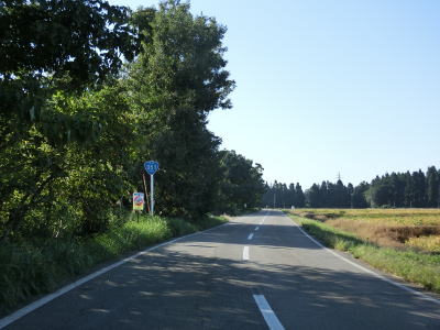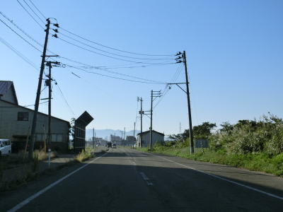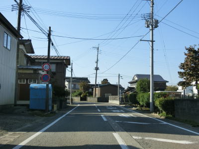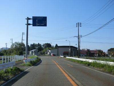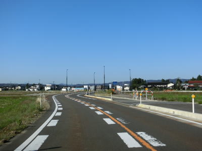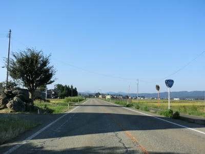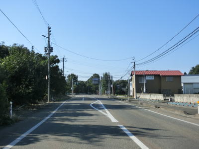 | フェニックス大橋をくぐった直後に永盛橋で渋海川を渡り、その先の須川の堤防を通っている市道が交差している右カーブを曲がる。以降は水田が広がっている中を平坦な2車線道路で走り抜ける。飯島集落と西の集落の間にはやや急なカーブがある。 | ||