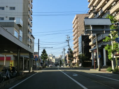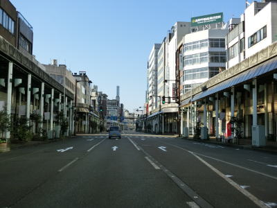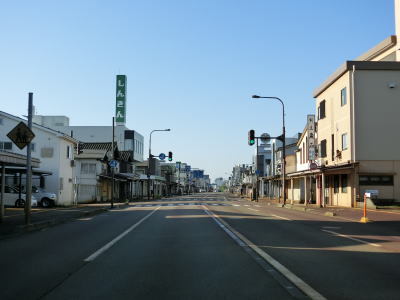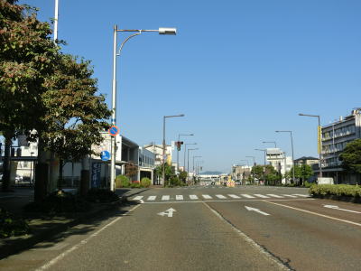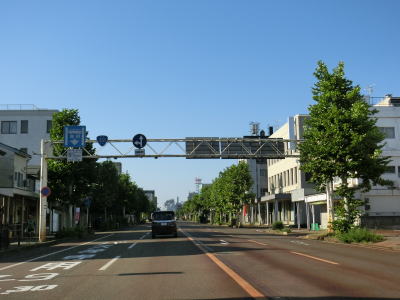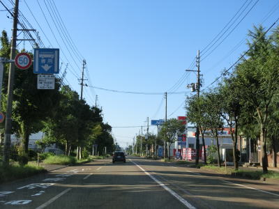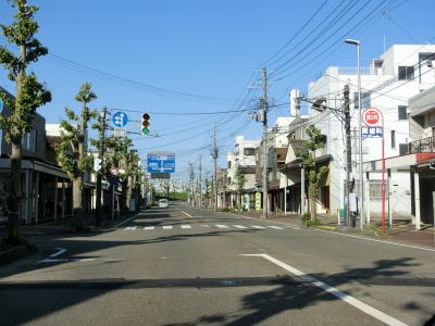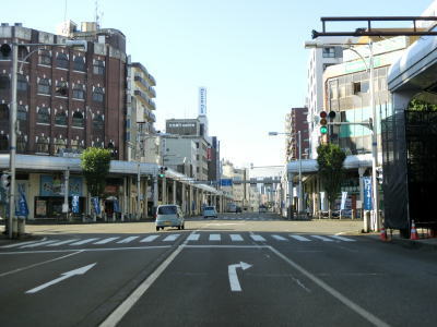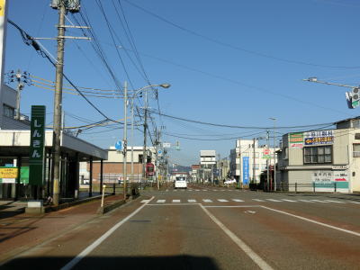 | 表町交差点から対面2車線道路を少し走ると平潟神社前交差点を道なりに右へカーブするようにして通過する。左折して市道を300m弱進むとR352・R404の追廻橋交差点がある。平潟神社前交差点からは車線幅の広い2車線道路を走る。長岡市の中心部からは離れていっているがアーケードが設置されている箇所がある。 | ||