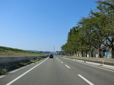 | 166.三仏生南交差点 | 167.信濃川の堤防の内側を走る | 168.千谷川4交差点 |