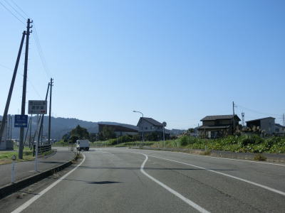 | 集落が途切れてからも水田や養魚場(?)があり、センターライン付きの2車線道路が続く。3km先の小国トンネルに3.3mの制限高が設定されている旨の事前予告標識が設置されているが、道路状況は良く断面積の小さなトンネルがある事は想像し難い。左ヘアピンカーブを曲がってからはカーブが多くなる。上村交差点から約3.2km走るとセンターラインが途切れて道幅も狭くなる。 | ||