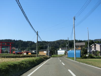 | 上村交差点で単独区間となってもすぐに道路状況が悪くなる訳ではなく、平坦な直線道路を走ってE17関越道の川口18カルバートをくぐる。上村集落に差し掛かる所で鳥居の近くを通るが、これは約3.7km先にある郡殿の池弁財天の鳥居である。集落が途切れる前に上り勾配となるが、センターライン付きの2車線道路をは続く。 | ||