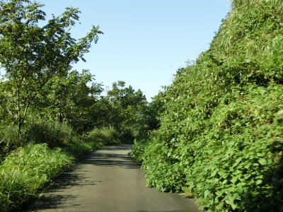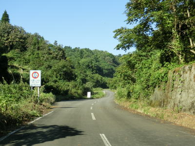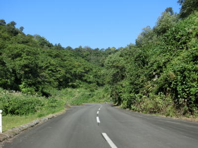 | 勾配は変わらないものの道幅は1.5車線程度と狭くなる。ヘアピンカーブのような急なカーブはほとんどないが小刻みなカーブが連続しているため見通しは良くない。走行したのは10月上旬だが、道路の両側に雑草が生い茂っておりただでさえ狭い道幅がさらに狭くなっている。 | ||