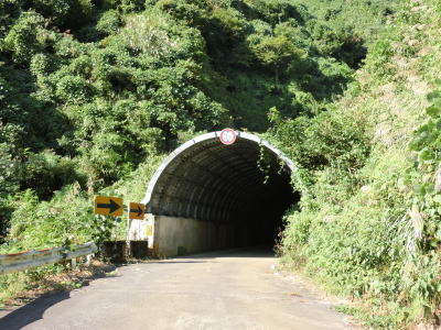 | 3.3mの制限高のある小國隧道をくぐると再び長岡市(旧小国町)に入る。勾配が上りから下りになるだけでその他の道路状況に変化はなくカーブの多い1.5車線幅狭路が続く。小千谷市側と同様に雑草が生い茂って道幅をさらに狭くしている。 | ||