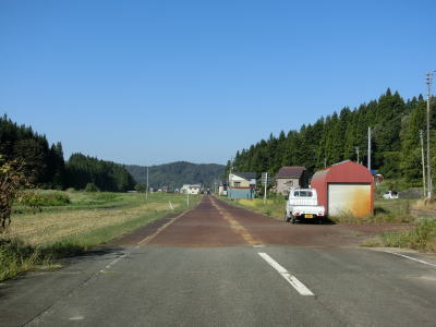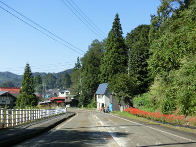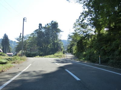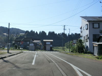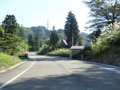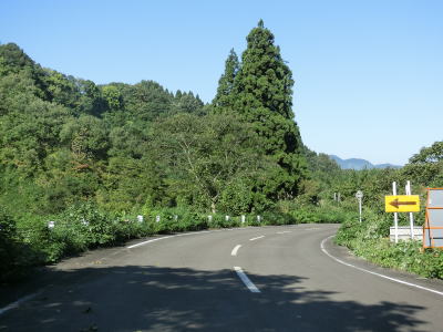 | 小國隧道を出てから約1.4kmでセンターラインが復活して2車線道路に戻る。小千谷市側の狭路区間と合わせると約3.6kmとさほど長い距離ではないが、3km弱北にR291が東西を繋いでいるため除雪は行われず冬期は閉鎖される。 2車線道路になってからは勾配もカーブも緩やかになるため一気に走りやすくなる。小国町楢原集落に入ると同時に路面が赤茶けているが、これは除雪用の融雪水の影響である。旧道かもしれない市道との交差点で一旦停止してから右斜め前方へと進む。案内標識は設置されていないが、道なりに走る感じである。 |