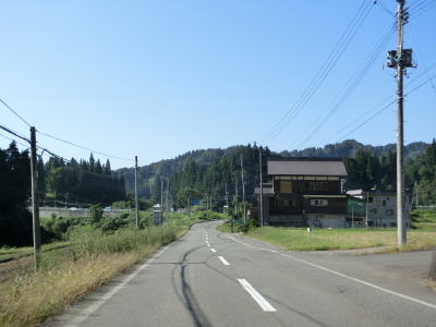 | 市道との交差点を右折した直後に平和橋で渋海川を渡る。これより南は渋海川の流域を走る事になる。平和橋を渡り終えてから少し走ると新潟r171交差点を通過する。さらに南下して原集落を通り抜けてから新潟r341交差点を通過する。 | ||