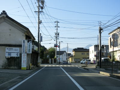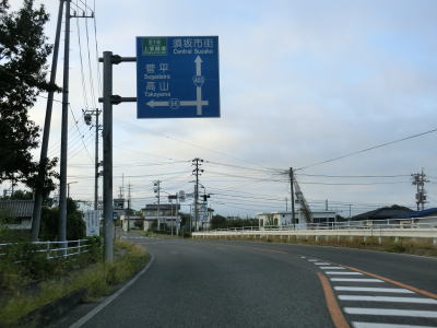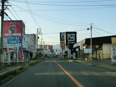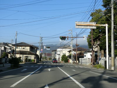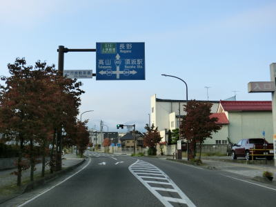 | 緩やかなカーブを描く2車線道路を走っているとR18粟佐交差点に至る。案内標識にR403のおにぎりは表記されていないが、左折してR18との重複区間を高崎・上田方面に進む。飯山市の中央橋西交差点からの距離はR403が約59km、R117とR18が約46kmである。10km強しか違わないが、R403は右左折が多いため両交差点間の往来には不向きであるのは言うまでもない。 | ||