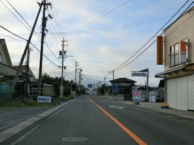 | 北須坂駅の近くで長野r499旭ヶ丘交差点を通過する。観光客向けの果樹園と家屋が混在している2車線道路を南に向かって走る。須坂市の市街地の手前を流れている八木沢川に向かって緩やかな勾配を下って行く。 | ||