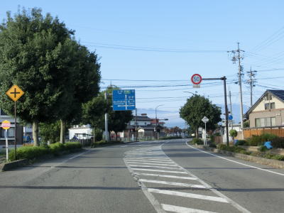 | 小布施町に入ってからは沿線の建物がほとんどなくなり水田が広がっている中を走る。平坦でカーブもほとんどないため非常に走りやすい道路状況である。長野r343矢島沖交差点を過ぎると徐々に沿線の家屋が増えていく。 | ||