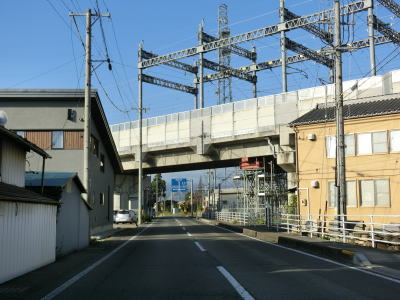 | 工業団地南交差点からも直線かつ平坦な2車線道路が続いいる。東屋代駅跡の近くで屋代中学校前交差点を通過し、そのすぐ先で北陸新幹線の高架橋をくぐる。S字カーブの中でしなの鉄道の松代踏切を通過する。すぐ北で北陸新幹線としなの鉄道とが交差しているが、どちらも駅は設置されていない。 | ||