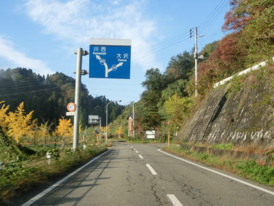 | 大貝トンネルを出て500m程度はセンターライン付きの2車線道路だが、センターラインがなくなると同時に道幅も1.0車線にまで狭くなる。道路脇の私有地を利用しなければ乗用車同士の離合もままならない狭さだが、その距離は約500mでヘアピンカーブを曲がった所で2車線道路になる。緩やかな上り勾配の2車線道路を走っていると新潟r56が交差している左カーブを曲がる。その後右カーブを曲がった直後にr56が十日町・小千谷方面に分岐していく。 | ||