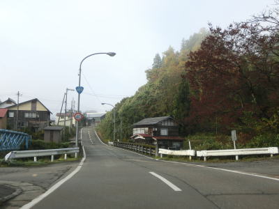 | 市道との交差点を右折してすぐに平和橋で渋海川を渡り、緩やかな左カーブを曲がっていると新潟r171交差点を通過する。r171は渋海川を挟んだ対岸を南北に結んでいる県道である。原集落を通り過ぎると新潟r341交差点を通過する。 | ||