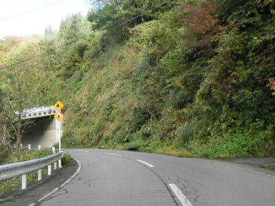 | 緩やかな上り勾配とカーブの2車線道路を走っていると渋海トンネルをくぐる。トンネルを出てすぐに旧道との交差点を通過し、走りやすい2車線道路を快走する。大倉トンネルを含む旧道との交差点を通過するが、2012年9月にR403を走行した際はこのバイパスは未供用であった。 | ||