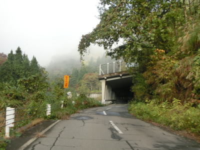 | 新潟r341交差点からは緩やかな上り勾配となり沿線の集落も途切れる。勾配は緩やかながら急カーブをいくつか通過しなければならない。苔野島集落を過ぎて大三桶橋を渡って上り勾配の右カーブを曲がった先で大貝トンネルをくぐって十日町市に入る。 | ||