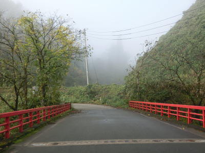 | 右の直角カーブを曲がって荒瀬橋を渡って左直角カーブを曲がる。異常気象時の通行規制区間に入るが、規制対象区間の延長は1.6kmと短いものの連続雨量120mm超、時間雨量30mm超と規制値は低い。また、1.0kmの区間は降雨時の鉄砲水と土砂崩壊に注意しなければならない。規制区間に入ると同時に上り勾配となり1.0車線幅の狭路を走る。 | ||