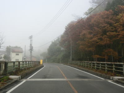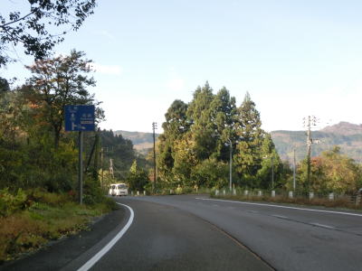 | 蒲生交差点からは下り勾配となり左カーブからは沿線の家屋が途切れる。カーブは多いもののセンターライン付きの2車線道路であり交通量が少ないため走りにくさはさほど感じない。緩やかな上り勾配を走っていると儀明集落を通過する。 | ||