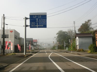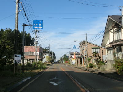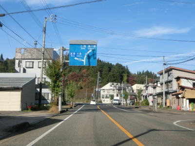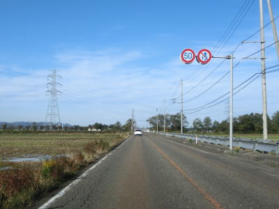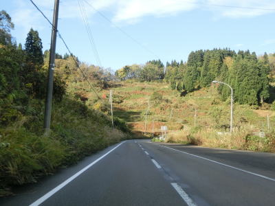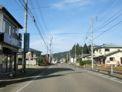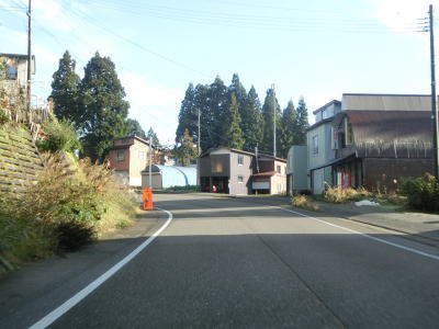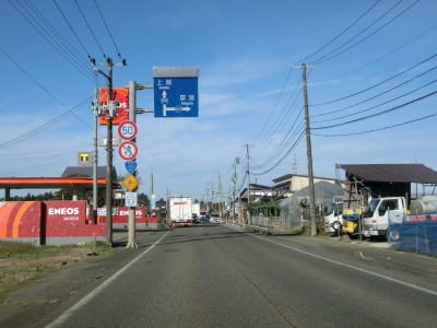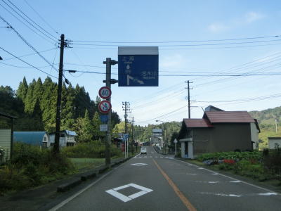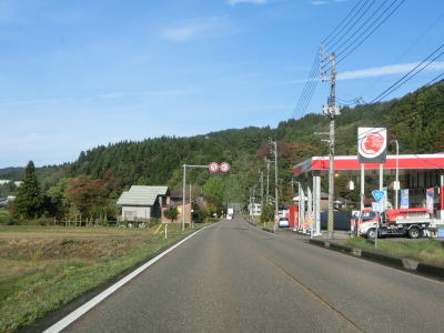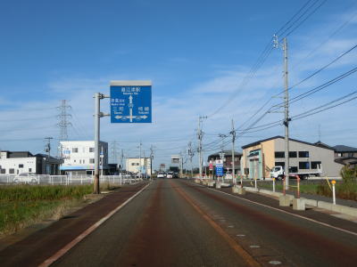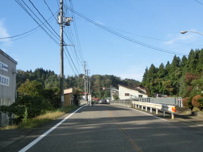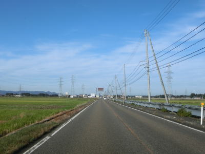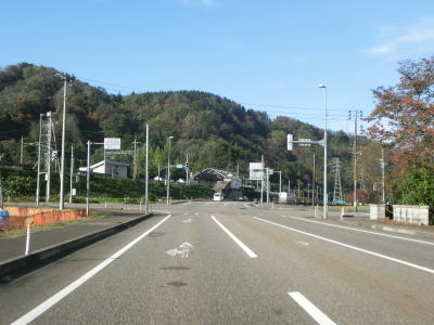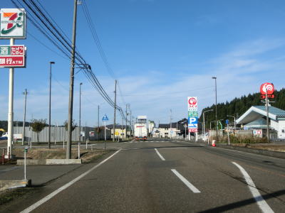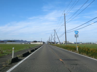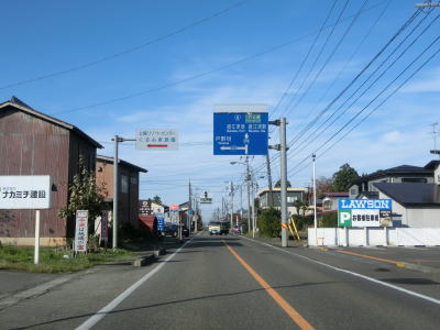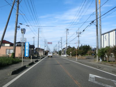 | 集落内のやや狭苦しい2車線道路を走っていると新潟r148交差点を通過する。青野池の北を通り過ぎて集落を出ると水田が広がる中を平坦な直線道路で走り抜ける。雪国らしく赤茶けたアスファルトの2車線道路を走っていると新潟r30青野交差点を通過する。 | ||