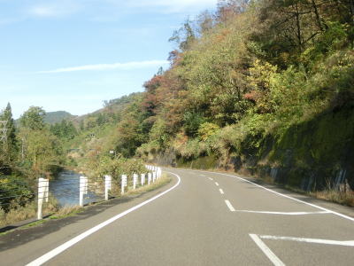 | 田澤下トンネルを出た直後に新田沢橋を渡る。次いで田沢橋を渡るが、渡り終えるとセンターラインがなくなり、次の元田沢橋も2.0車線幅である。これら3つの橋はどれも渋海川に架けられており、その事からも渋海川がいかに蛇行しているかが分かる。 | ||