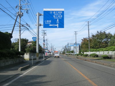 | 水田の間を快走しているとE8北陸道の五貫野高架橋の下をくぐる。200番台の国道との重複区間ながらインターチェンジは設置されていない。千福橋を渡ってからは沿線には家屋よりも工場が多くなる。 | ||