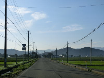 | 2車線快走路を淡々と東進していると新潟r30野尻交差点を通過する。野尻交差点から東の沿線は家屋よりも水田の方が多くなるため見通しが良くさらに走りやすく感じられる。 | ||