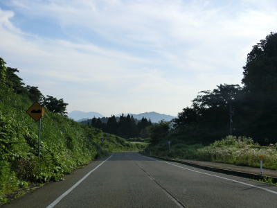 | 緩やかな上り勾配の2車線道路を快走していると路面の凹凸に対する警戒標識とともに徐行標識が立っている。確かに凹凸があるがアスファルトが損壊している凹凸ではなく縦断方向の凹凸が連続していた。牧区今清水から牧区切光にかけても急カーブが連続しているが、どれも曲線半径は大きく取られている。 | ||