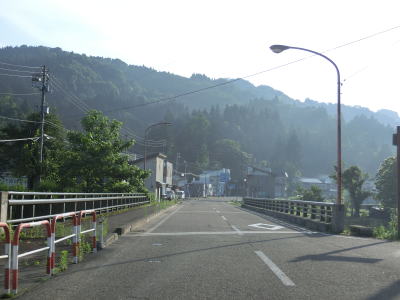 | 和田交差点からはR403との重複区間となるが、おにぎりはR403しか設置されていない。約600mで新潟r13との交差点を通過する。旧安塚町の中心部からのR403にはr13が重複しており、ここで分岐する。その後も2車線道路が続いており、一部はセンターラインが消えかけているものの走りやすい道路状況である。 | ||