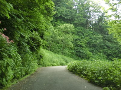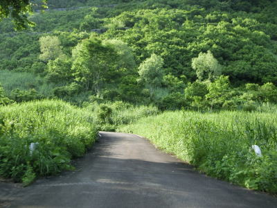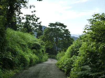 | 71.雨量通行規制区間に入ってからは狭くなる | 72.ヘアピンカーブが連続している | 73.雑草が道幅を狭めている |