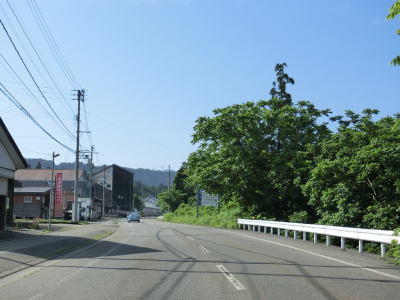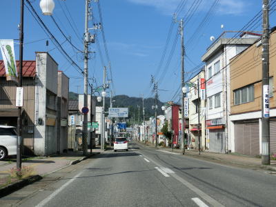 | 津南駅入口交差点からはR117との重複区間となるせいもあって両側に歩道が設置された2車線道路になる。津南町役場の前を通った先の大割野交差点を左折してR117との重複区間が終わる。津南駅入口交差点からの距離は300mに満たない。 | ||