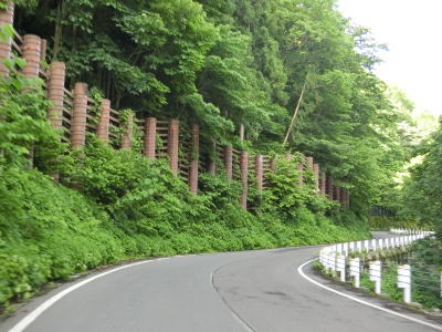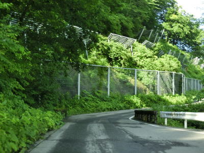 | 161.少し変わった形状の落石防止柵(?) | 162.拡幅された箇所もある | 163.上ノ原集落は左折 |