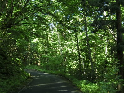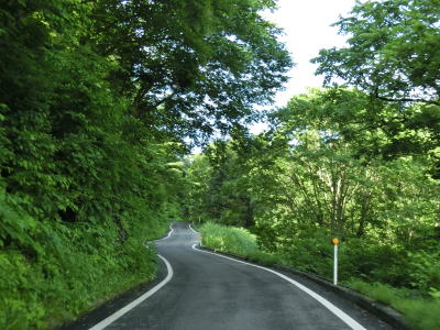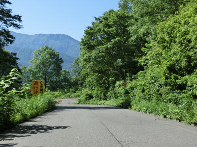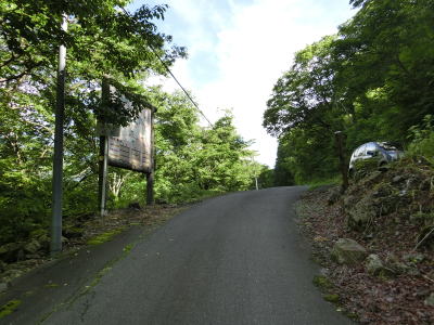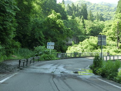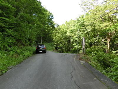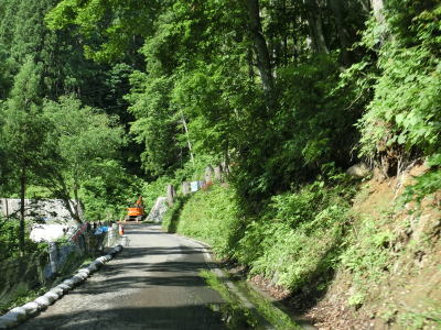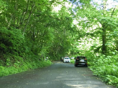 | 法面からの土砂流出痕を通り過ぎた先で多くの路上駐車車両が停まっている場所を通過する。佐武流山への登山道のドロノ木平登山口があり、おそらく登山客の車両であろう。駐車車両はあったものの基本的には交通量は極めて少なく対向車に出くわす可能性は低い。 | ||
