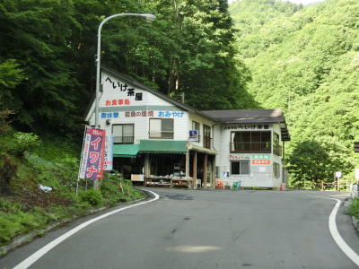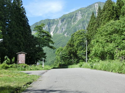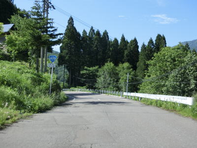 | へいけ茶屋の前の左ヘアピンカーブを曲がって上っていると右ヘアピンカーブを曲がる。前倉橋の前後にはどちら側にもヘアピンカーブが存在している。小刻みにカーブしている1.0〜1.5車線幅狭路を走っていると大赤沢集落に入る。秋山郷の集落のひとつで津南町では最南端に位置している。かつては津南小学校大赤沢分校があったが、2011年に休校、そして2021年に廃校となっている。 | ||