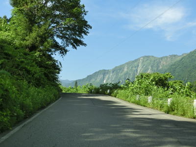 | 170.村道との交差点の直後におにぎりあり | 171.旧道のような雰囲気が漂う | 172.ガードレールが設置された箇所もある |