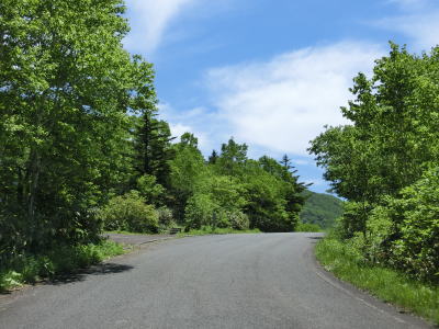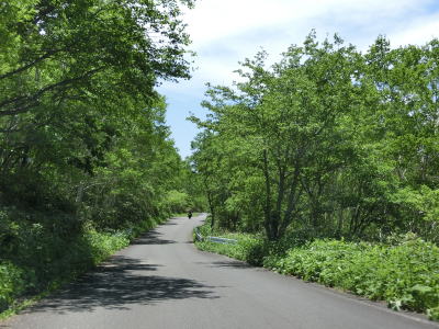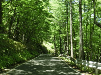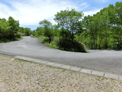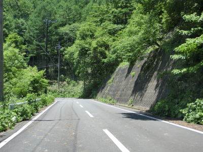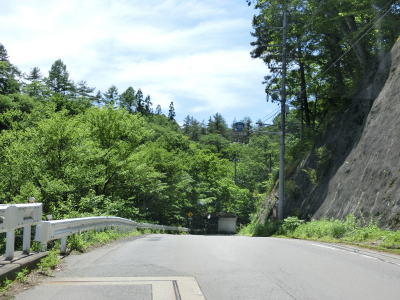 | 万沢林道との交差点からはカーブが連続している1.5〜1.8車線幅狭路を走る。勾配は非常に緩やかだが基本的には下り勾配である。野反峠休憩舎以南は交通量が増えたと書いたが、一般的に言えばまだ少ないと言える範疇である。 | ||