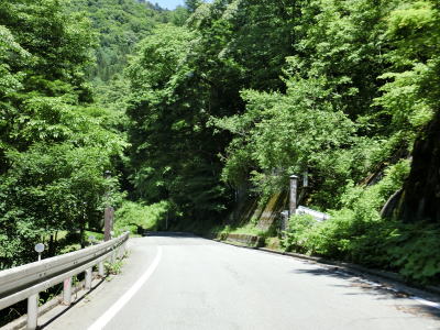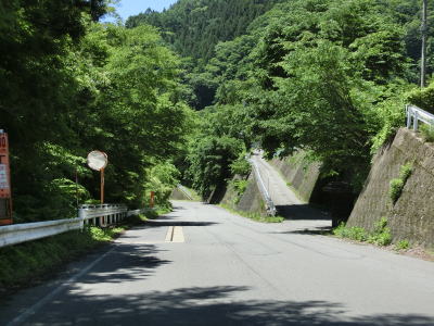 | 群馬県側端点から約12.3kmで閉鎖用ゲートを通過して左ヘアピンカーブを曲がる。ゲートの直後には和光原集落がある。集落を遠すぎて緩やかな下り勾配も2.0車線幅道路を走っていると迂回路として通った町道との交差点を通過する。 | ||