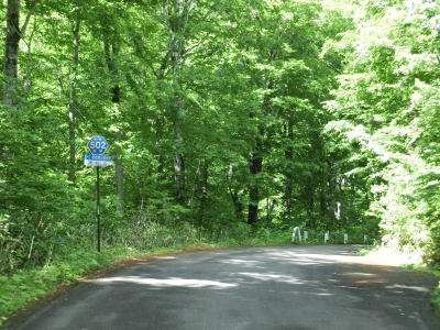 | 奥志賀高原の別荘地の東から先は視界が開け、道幅も1.8〜2.0車線幅と少しだけ広くなる。ガキ沢橋を渡って緩やかな勾配を上った先で奥志賀ゲートを通過する。ゲートの先に交差点があるが、長野r502の起点かつ長野r471の終点であり以南はr471を南下する。 | ||