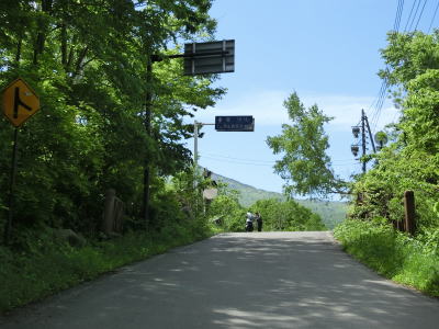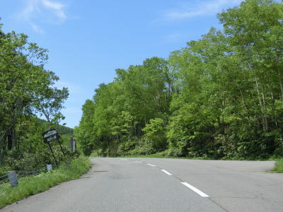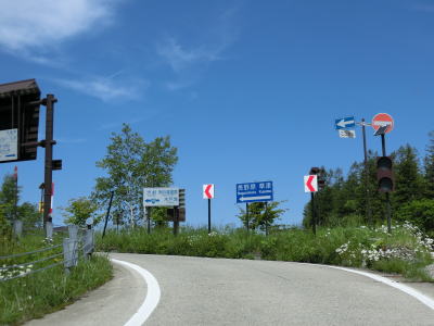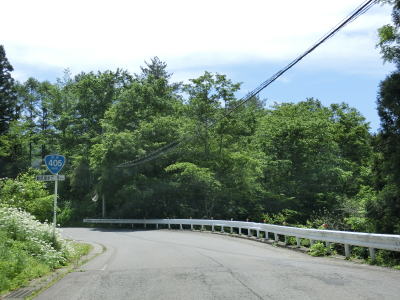 | 小倉集落を通り過ぎてからは1.0車線幅の狭路が続いており、カーブも多く見通しが悪い。長平集落を通り過ぎた先で町道との交差点に至る。群馬r55は直進だが幅員狭小のため大型車は通行できないと警告されており、野反湖は左折の町道に案内されている。本サイトは「県道を往く」ではないうえにただの迂回路のため、より走りやすい左折の町道を選択する。 | ||