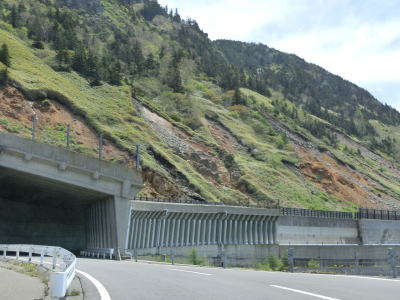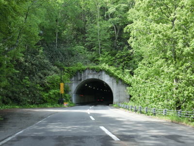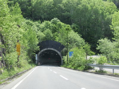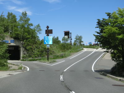 | 西館山スキー場と東館山スキー場との間を通るが、そこに架かっている跨道橋は冬季にはスキー板を付けたまま行き来する事ができるようである。大きく左にカーブして旧道らしき道路との交差点の直後に志賀3号トンネルに入る。事前に確認した道路情報では志賀3号トンネルが工事のため通行止であったが、規制は敷かれておらず通常通り通行できた。カーブが連続する2車線道路を少し走ると志賀2号トンネルをくぐる。 | ||