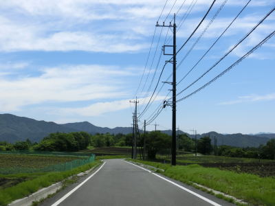 | 大沢橋から約1.0kmで交差点を通過する。道なりに進んだ先に群馬r55のヘキサが設置されているが、ウォっちずでは左斜め前方方向の道路が県道として表記されている。おそらくバイパスとして改良されたものの県道には指定されていないのだろう。町道(?)区間は道幅こそ1.8車線幅と決して広くはないが見通しが良く走りにくさはさほど感じない。約700m先の交差点を左折するとr55のバイパスに入る。 | ||