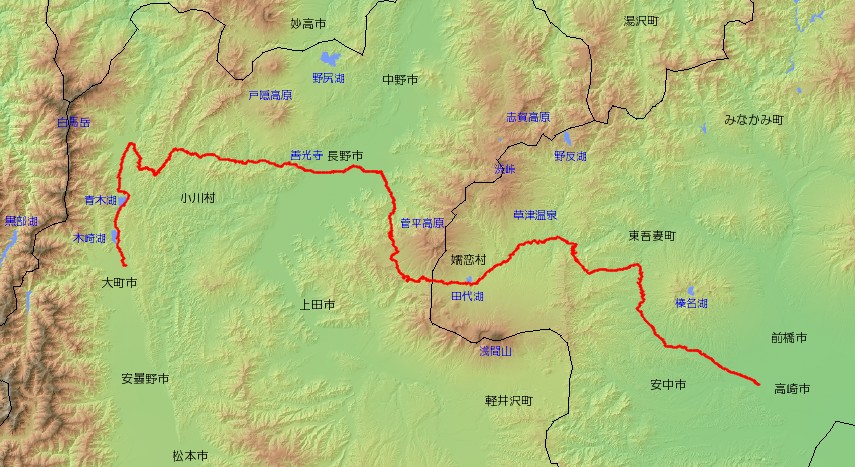 | 主な経由地 | 長野県大町市〜白馬村〜長野市〜須坂市〜上田市〜 〜群馬県嬬恋村〜長野原町〜高崎市 |