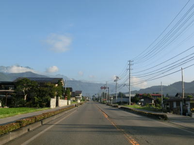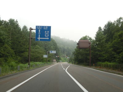 | 佐野集落に入るとカーブは落ち着いて勾配も緩やかになる。緩やかにアップダウンしている直線基調の2車線道路を走っていると道の駅「白馬」を通過する。周囲にはペンションやスキー場が多く、寂しげな雰囲気はあまり感じられない。 | ||
