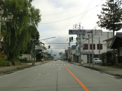 | 39.長野r322白馬駅前交差点 | 40.白馬村の中心部を走る | 41.R148北城交差点を右折 |