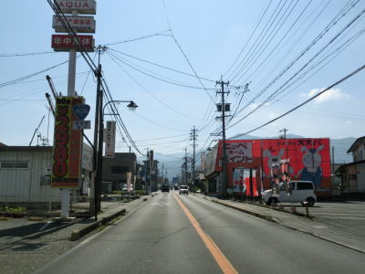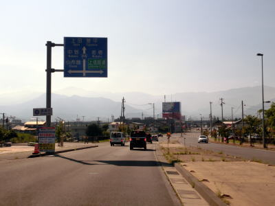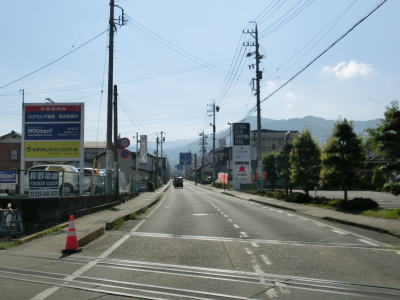 | 長野電鉄と隣接した状態から離れた直後に長野r343・r347村山町交差点を通過する。片側2車線道路をさらに少し走ると上信越道の手前の高梨町西交差点で左側車線が左折専用車線となってしまう。その後は対面2車線道路となって須坂市の市街地に向かって進む。車線の数は減ってしまったものの沿線には商業施設が多く賑やかな印象である。当然ながら休日は(平日も?)結構な交通量があると思われる。 | ||