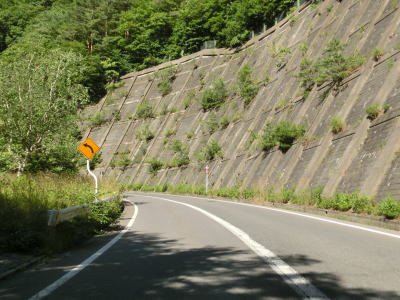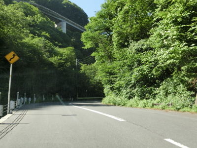 | 左のヘアピンカーブを曲がって北の方角に向かっていると右に大きくカーブして大洞橋を渡る。カーブが多く急勾配の2車線道路を下っていると反対側車線に登坂車線が設置されている区間を通る。 | ||