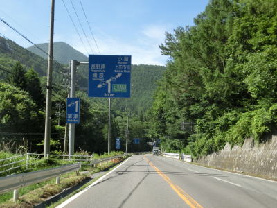 | 鮎川に沿って走っていると支流の宇原川に架かる宇原橋を渡った先で旧道との交差点を通過する。やや勾配のきつい仙仁バイパスを走っていると仙仁大橋を渡り、旧道と合流する。やや急な左カーブを曲がると登坂車線が現れる。登坂車線区間となってから程なくして上信越高原国立公園に入る。 | ||