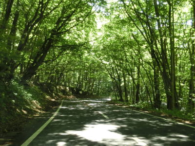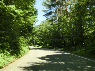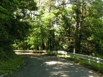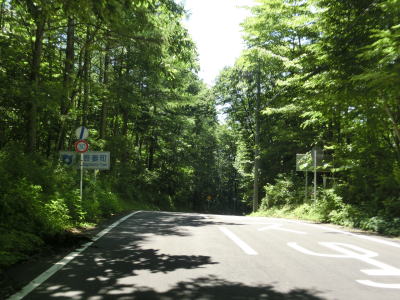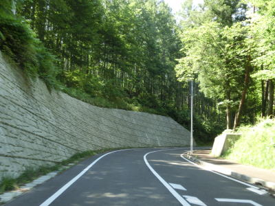 | 上り勾配の2車線道路を走っていると3ヶ所のヘアピンカーブを通過するが、その辺りには路面に凹凸が施されたスピード抑制区間が複数設置されている。厚めのペイントで凹凸を造るのではなく舗装そのものに凹凸があるため、緩やかな振動が伝わってくる。 | ||
