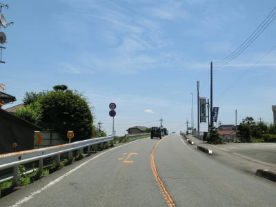 | 群馬r132交差点と群馬r137下里見交差点を相次いで通過し、その後も歩道が整備されていない2車線道路を南東の方角に向かって走る。標高は100mを越えている場所だが、ほぼ平坦でしかも直線的なので見通しは良好である。里見川に沿った場所で群馬r10下大島町交差点を通過する。 | ||