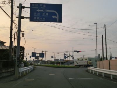 | 引き続き交通量の多い2車線道路を走っていると群馬r139剣崎町交差点を通過し、程なくして上豊岡町北交差点を通過する。上豊岡町北交差点で交差しているのは市道だが、高崎環状線と呼ばれる片側2車線の幹線道路である。さらに進むと緩やかな勾配を上って豊岡跨線橋でJR信越本線をオーバーパスする。小さな藤川を渡って少し走ると群馬r26下豊岡町西交差点を通過するが、r26への右折は禁止されている。 | ||