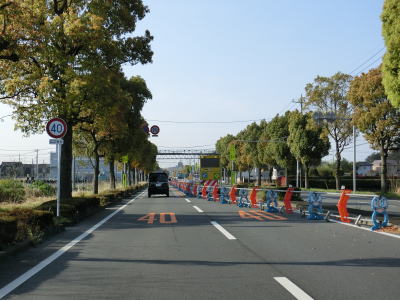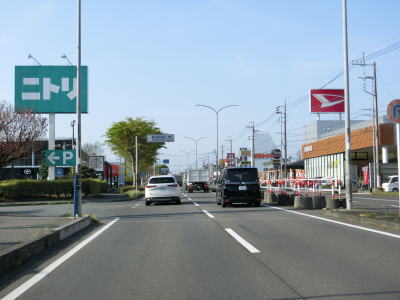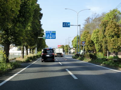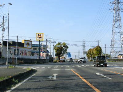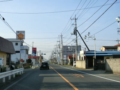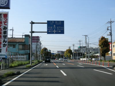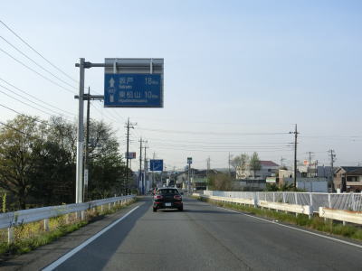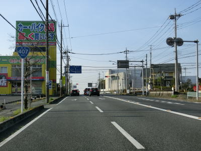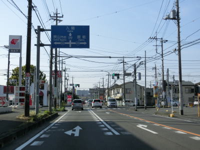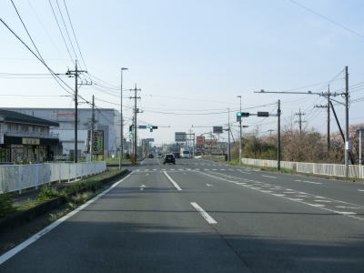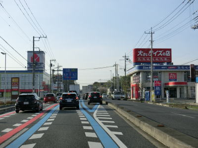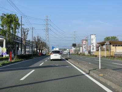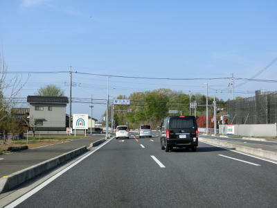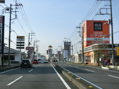 | 市境を越えて再び熊谷市に入った直後に埼玉r307冑山交差点を通過して緩やかな右カーブを曲がる。埼玉r257・r307東平(北)交差点には市境が横切っており、今度こそ東松山市の本体(?)に入る。東松山市の中心部にはまだ少し距離があるが、沿線の商業施設が徐々に増えて行き、同時に交通量も増える。 | ||