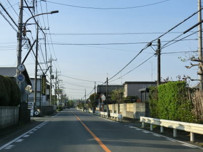| 高萩南交差点からは対面2車線道路を南下する。車線が減少しただけでなく歩道が完全に整備されていない一方で交通量は僅かしか減っておらず走りにくく感じる。沿線には一般家屋が多く通勤通学時間帯は気を遣った走行になってしまうだろう。R468/C4圏央道の日高第一橋をくぐってから程なくして狭山市に入る。 | ||